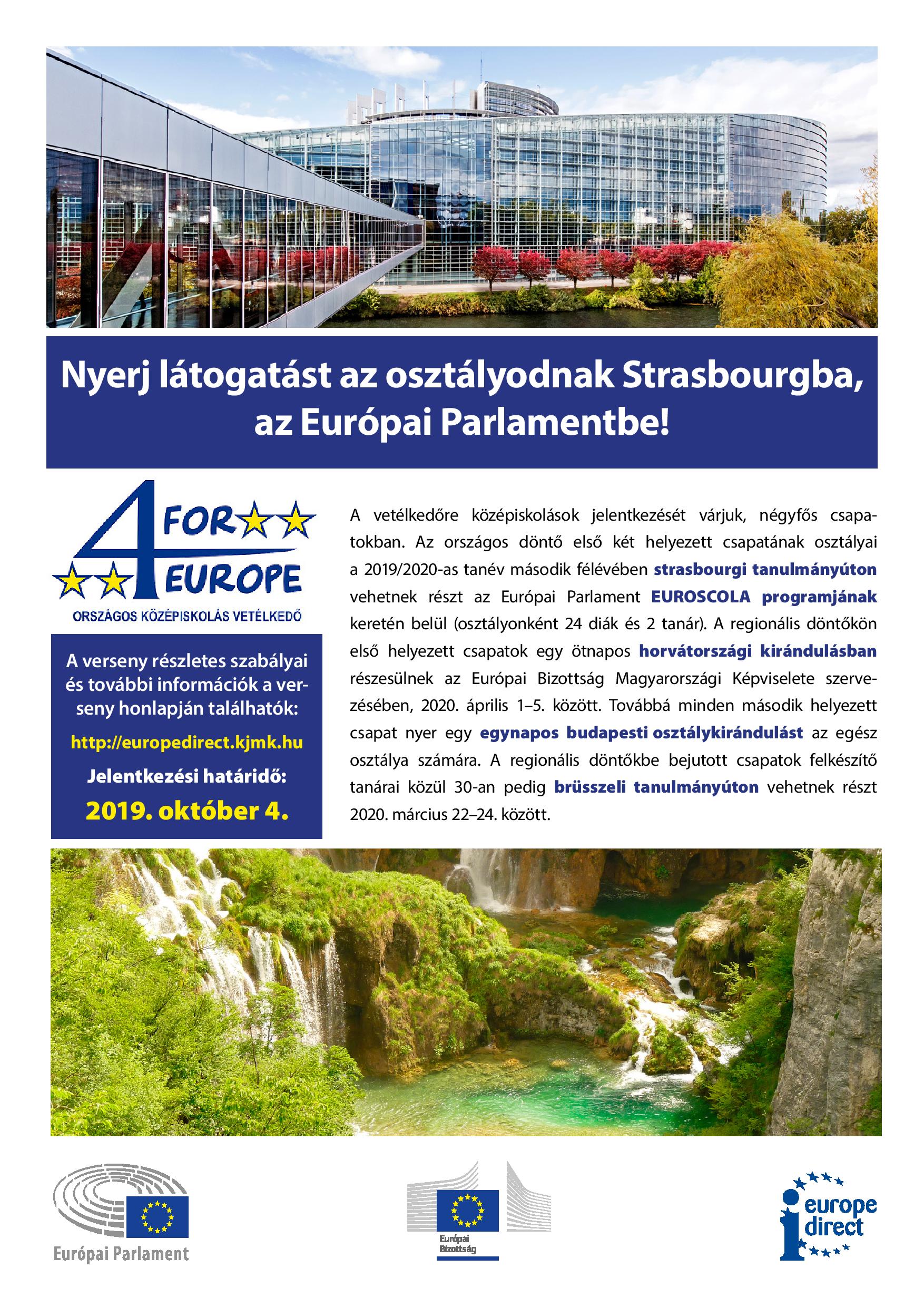 A Europe Direct Információs Hálózat, az Európai Bizottság Magyarországi Képviselete és az Európai Parlament Magyarországi Kapcsolattartó Irodája európai uniós ismeretekre építő vetélkedőt szervez minden évben. Az első, azaz az online forduló után dől el, hogy mely 10 középiskolás csapat jut be a regionális döntőkbe. Idén minden eddiginél nagyobb számban regisztráltak a versenyre, akik közül az észak-alföldi regionális döntőn Hajdú-Biharból három, Jász-Nagykun-Szolnok megyéből is három,Szabolcs-S
