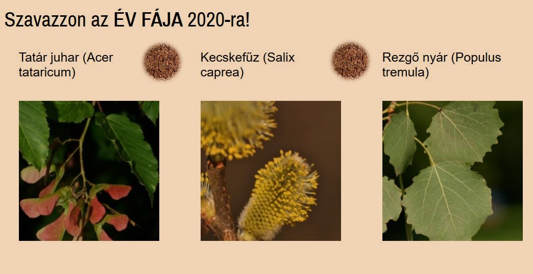 Az Országos Erdészeti Egyesület és az Év Fája Kuratórium hetedik alkalommal teszi lehetővé, hogy bárki szavazzon a következő esztendő Év fájára. A hazai fafajokat középpontba helyező, figyelemfelhívó mozgalom kuratóriumának döntése alapján november 22-ig a következő fafajokból lehet választani: tatár juhar, kecskefűz, rezgő nyár. Szavazni lehet azevfaja.hu oldalon.