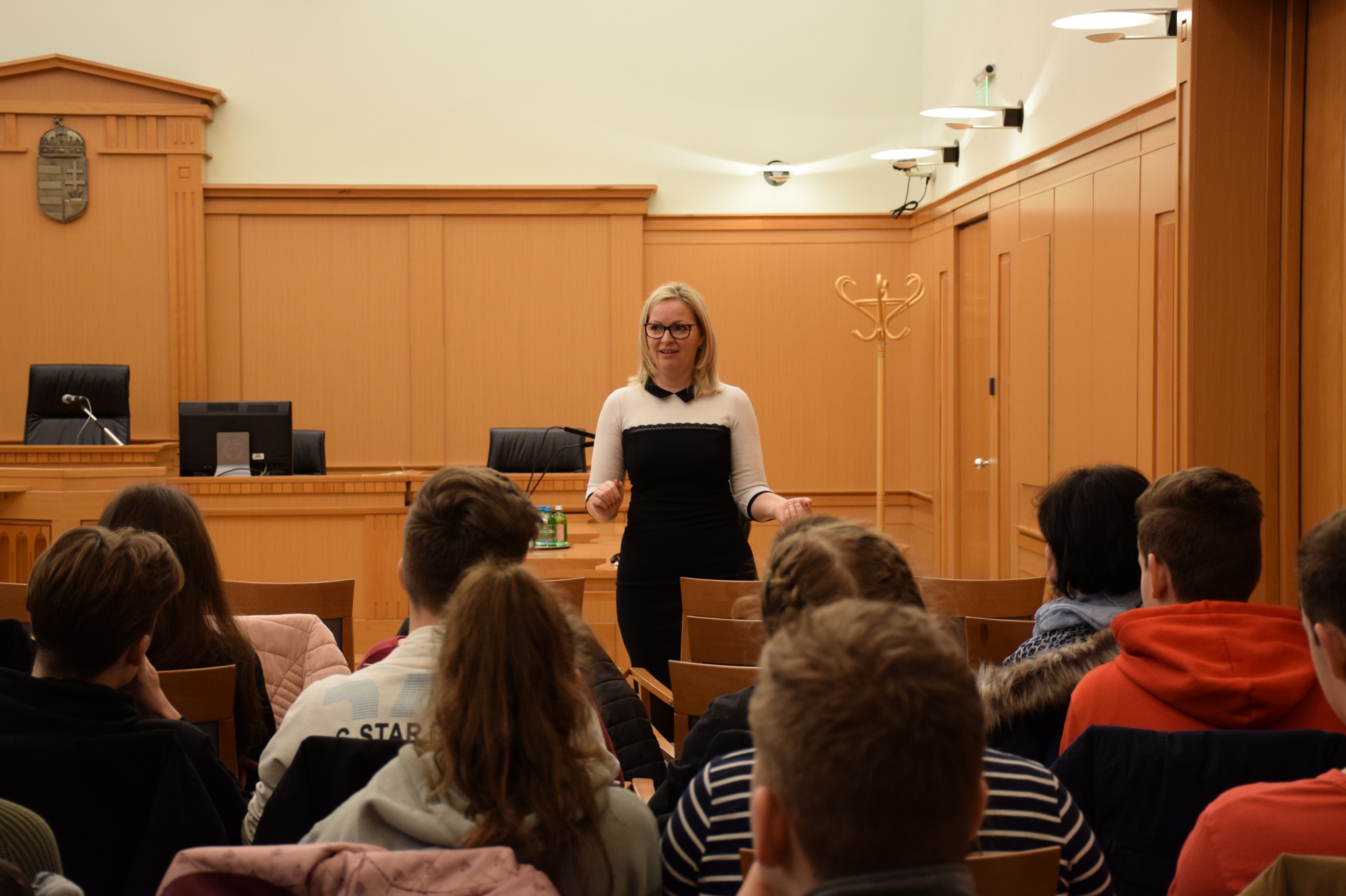 A nyíregyházi Arany János Gimnázium és Általános Iskola 8. osztályos tanulói vettek részt a Nyíregyházi Törvényszék február 7-én megtartott Nyitott Bíróság programján. A mintegy 35 fős hallgatóság előtt Gutyánné dr. Orosz Edina, a program koordinátora tartott előadást az igazságszolgáltatás szervezetéről, felépítéséről, a bírósági eljárások, egyes tárgyalások sajátosságairól. Az előadást követően a diákok a jogi pálya felé orientáló továbbtanulási lehetőségekről, illetve a bíróvá válás folyamatá