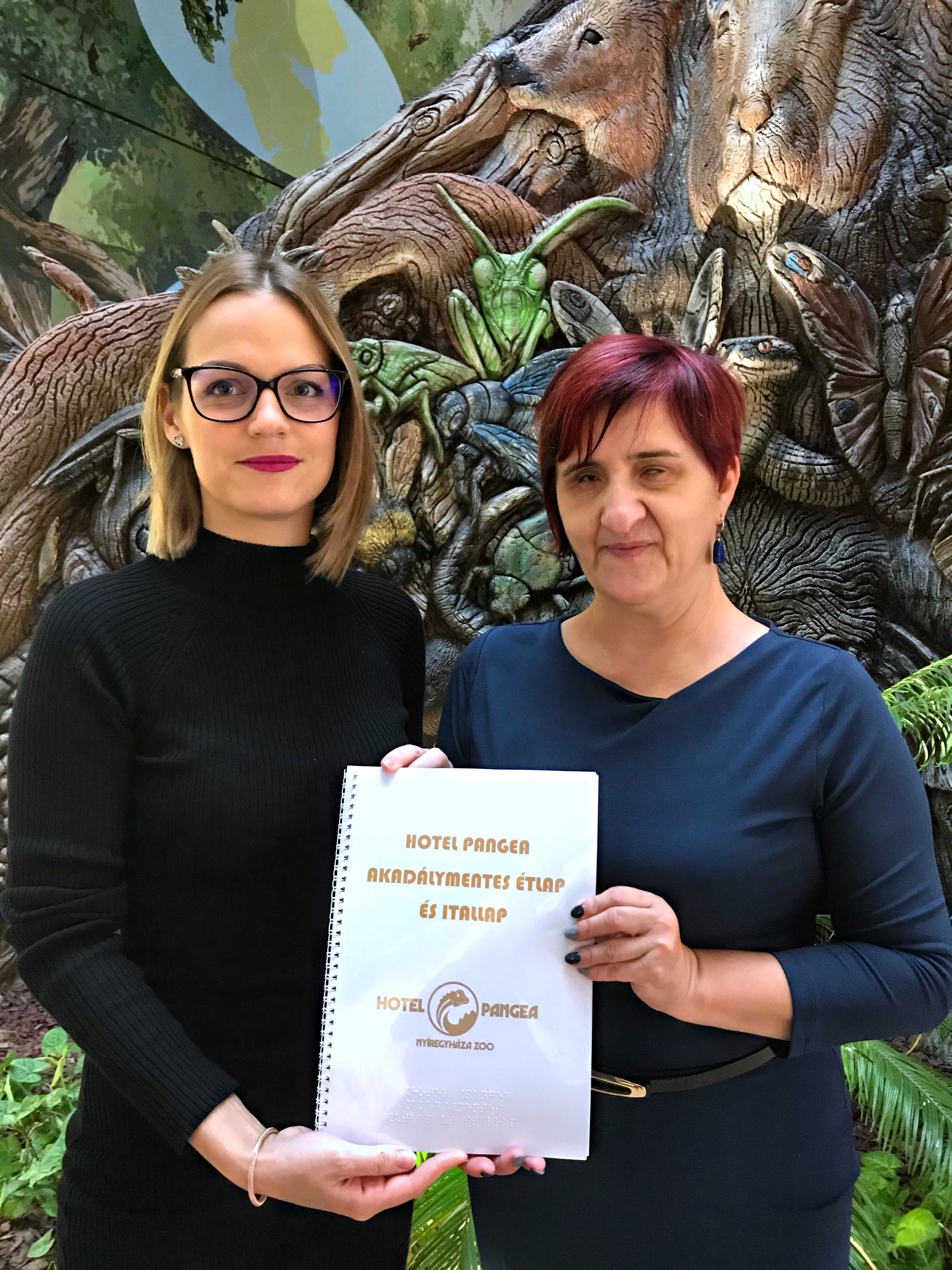 A Nyíregyházi Állatpark fontos küldetésének tartja a fogyatékossággal élők számára az akadálymentesített környezetet, és az elmúlt években számos fejlesztés történt hogy mindenki maximális kényelemben érezze magát, a 35 hektáros területen. Most a Vakok és Gyengénlátók Szabolcs-Szatmár-Bereg Megyei Egyesületének köszönhetően újabb lehetőség adódott a park számára. Mostantól a Hotel Pangea akadálymentes étlap és itallappal rendelkezik, melyben 24-es betűtípussal síkírásban és Braille írásban, tap