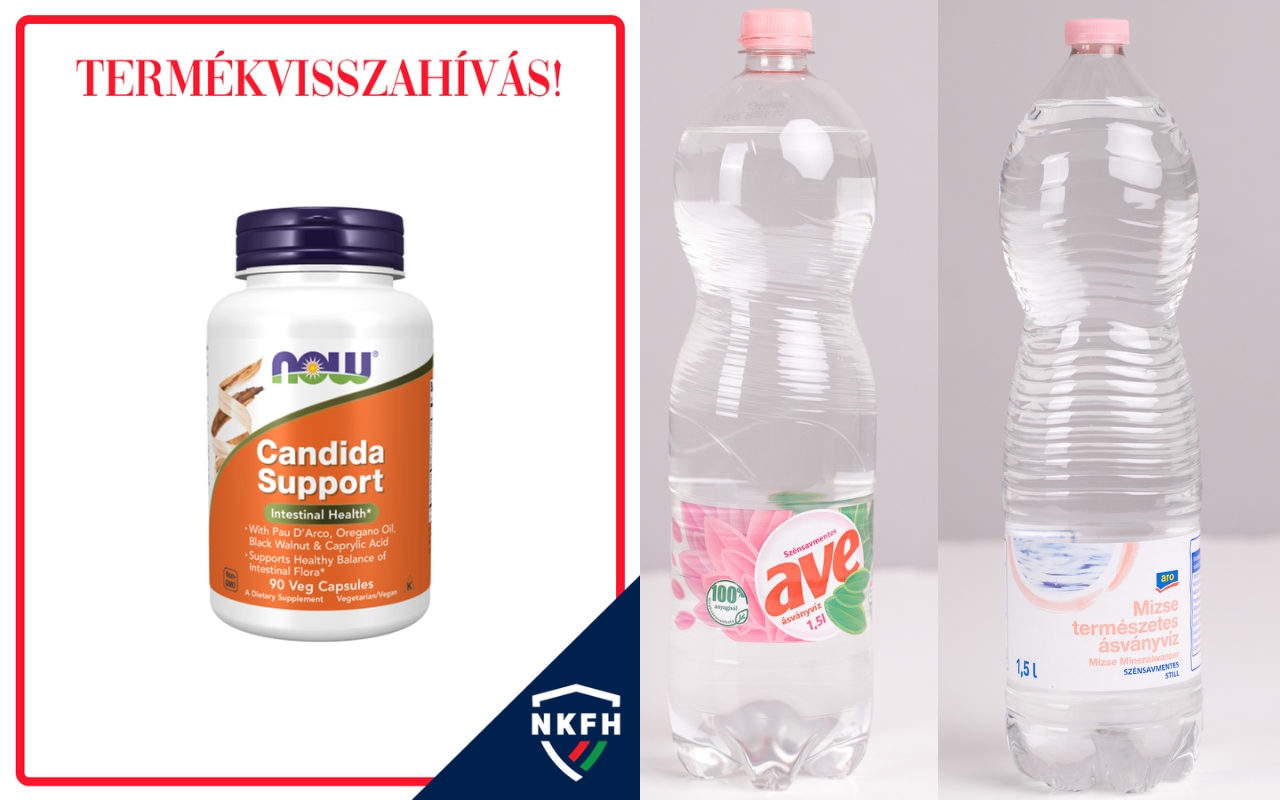 Ásványvizeket hívtak vissza mikrobiológiai probléma miatt – közölte a Nébih. Az intézkedés az 1,5 literes, szénsavmentes AVE ásványvizet érinti október 29-ei minőségmegőrzéssel, valamint az 1,5 literes Aro Mizse szénsavmentes ásványvizet, amelynek lejárata 2027. április 22. A hatóság azt kéri, hogy aki ilyen terméket vásárolt, ne fogyassza el, hanem vigye vissza az üzletbe. Közben egy étrend-kiegészítőt is visszahívtak: a Now Foods Candida Support kapszulában nem engedélyezett összetevőt találtak. A forgalmazó arra kéri a vásárlókat, hogy a terméket juttassák vissza a webáruháznak. További részletek a hatóságok honlapján.