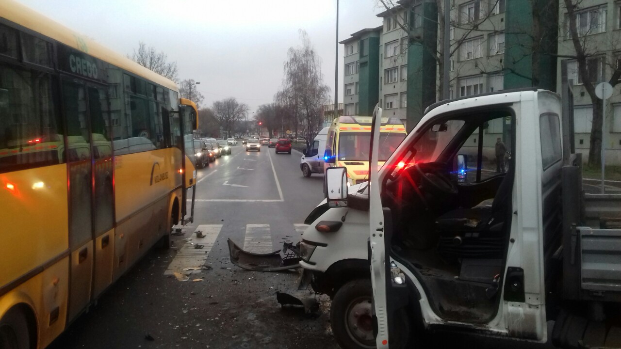Autóbusz és egy teherautó ütközött Nyíregyházán