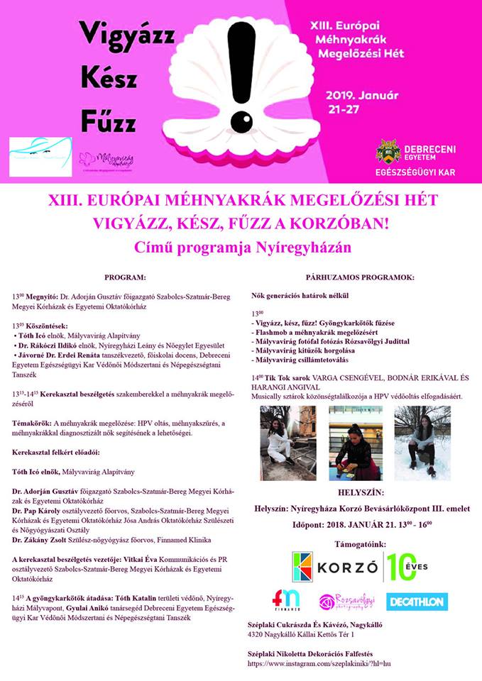 Az Európai Méhnyakrák Megelőzési Héttel kapcsolatosan Nyíregyházán is szerveznek programotb