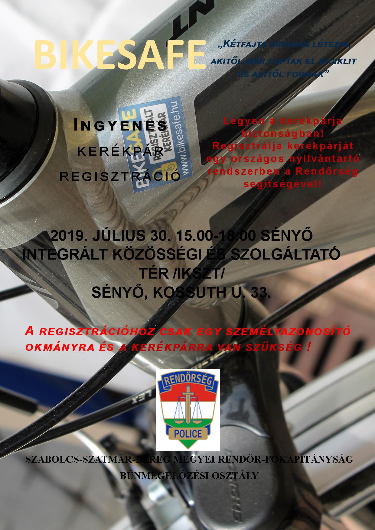 Sényőn regisztrálhatják kerékpárjaikat legközelebb az érdeklődők. A Megyei Rendőr-főkapitányság munkatársai BikeSafe kerékpár-regisztrációra várják az érdeklődőket július 30-án, kedden 15 órától 18 óráig a sényői Integrált Közösségi és Szolgáltató Téren (Sényő, Kossuth tér 33.). A cél hogy lopás esetén a jelölés segítse a keresett kétkerekű azonosítását, vagy a megtalált kerékpár tulajdonoshoz történő visszajuttatását.