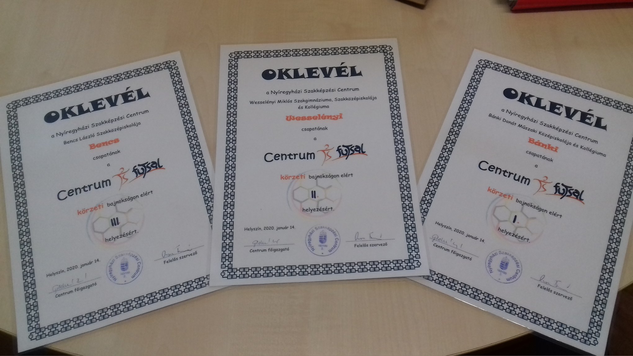 A szakképzési centrumok között zajlanak januárban a Centrum Futsal 2020 bajnokság körzeti selejtezői. A Nyíregyházi SZC Wesselényi Miklós Szakgimnáziuma, Szakközépiskolája és Kollégiuma tornacsarnokában rendezték meg január 14-én a Nyíregyházi Szakképzési Centrum iskolái közötti versenyt. Három csapat küzdött a megyei döntőbe jutásért: a Bánki, a Bencs és a Wesselényi. Közülük a Bánki csapata jutott a megyei döntőbe, ahol majd a Kisvárdai Szakképzési Centrum első-, és a Mátészalkai Szakképzési C