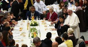 Hátrányos helyzetű olaszokkal és külföldiekkel, magányos idősekkel és betegekkel, hajléktalanokkal telt meg a Vatikán a szegények világnapján, amelyen Ferenc pápa ezerötszáz rászorulóval ebédelt a pápai állam audienciatermében vasárnap. Százötven asztalt állítottak fel a VI. Pálról elnevezett teremben. Százan Ferenc pápával közös asztalnál kaptak helyet. Az ebéd első fogása tészta volt, majd baromfihúsből készült étel és édesség következett. A résztvevők élelmiszercsomagot is kaptak ajándékba.