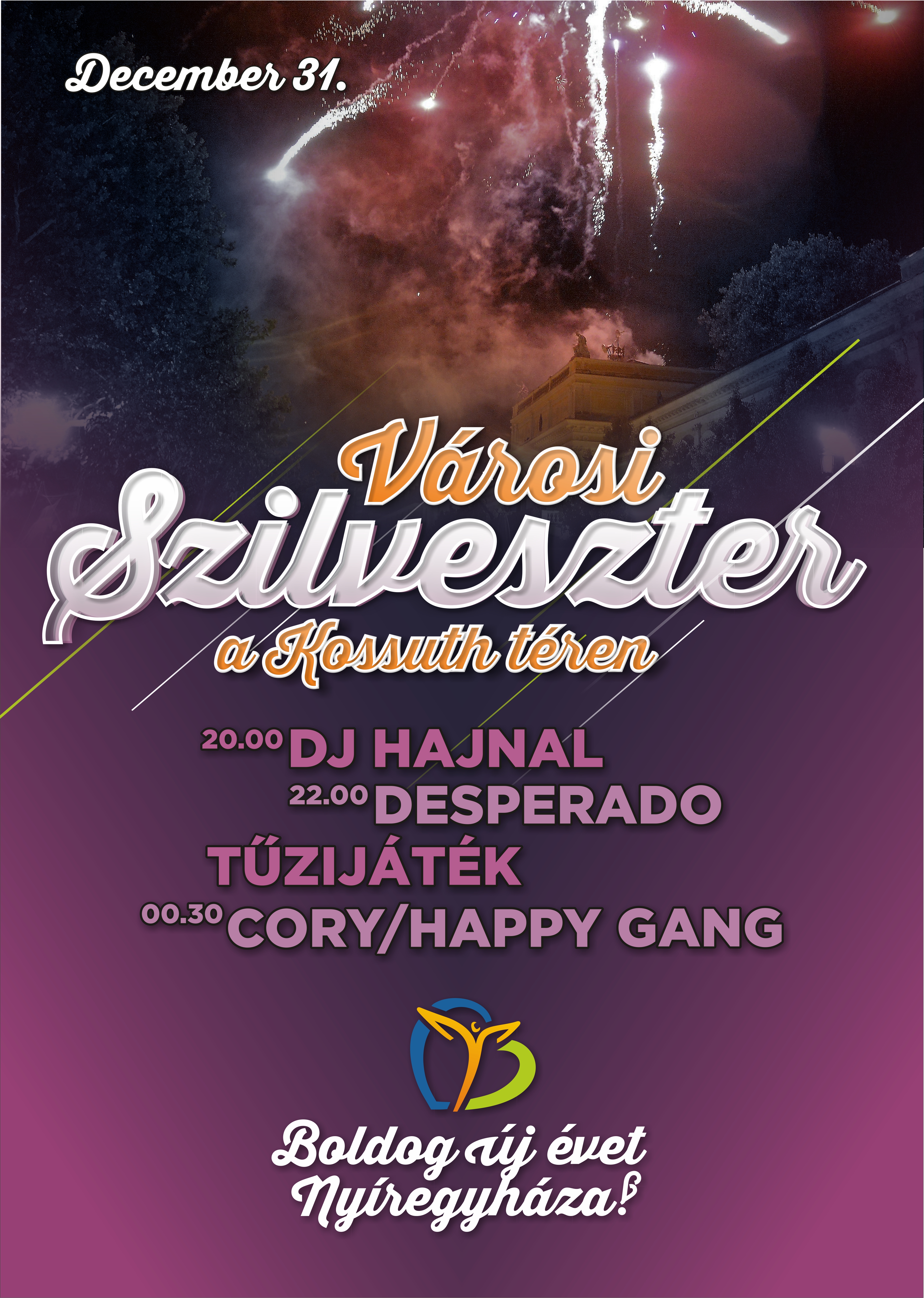 Közös ünneplésre invitálja Nyíregyháza önkormányzata Szilveszter éjszakáján a városlakókat. Az óévbúcsúztató idén is a Kossut téren lesz, ahol fergeteges koncertek, tűzijáték és utcabál várja az ünneplőket. Az év utolsó napjának hangulatát fokozza majd, hogy a forgatag is nyitva tart, így ha megéheznének, megszomjaznának a térre érkezők, bőven lesz miből válogatni. A részletekről dr. Ulrich Attila Nyíregyháza alpolgármestere beszélt a 99,4 Sunshine Fm-nek.