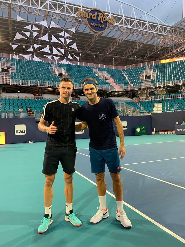 A 20-szoros Grand Slam-bajnok Roger Federerrel edzett hétfőn Fucsovics Márton, aki a férfiak számára szerdán elrajtoló miami keménypályás tenisztornára készül. A 27 éves nyíregyházi játékos Facebook-oldalán osztott meg egy fotót, amelyen a svájci szupersztárral mosolyog a centerpályának számító Hard Rock Stadionban. Fucsovics 29. kiemeltként vág neki a floridai szupertornának, így csak a második fordulóban - a legjobb 64 között - kezd, méghozzá selejtezőből érkező ellenféllel. Az első mérkőzésér