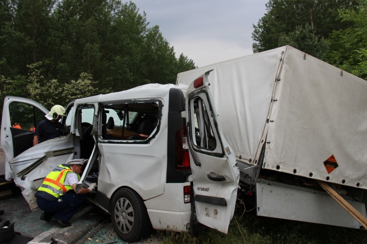 Négy gépkocsi ütközött össze eddig tisztázatlan körülmények között a 4-es számú főúton Székelynél ma reggel. Az eddigi adatok szerint egy Kisvárda felől Nyíregyháza irányába tartó tehergépkocsi ütközött neki az előtte haladó járműnek, ami ennek következtében az alárendelt útra kanyarodni szándékozó kisbuszba csapódott. Az ütközést az a kisteherautó sem tudta elkerülni, amely Nyíregyháza felől tartott Kisvárda irányába, és amelynek elhaladását várta a kanyarodni szándékozó kisbusz. A baleset következtében hárman a helyszínen életüket vesztették, ők valamennyien a kisbusz utasai voltak. További hatan megsérültek, őket a mentőszolgálat munkatársai kórházba vitték.(police.hu)