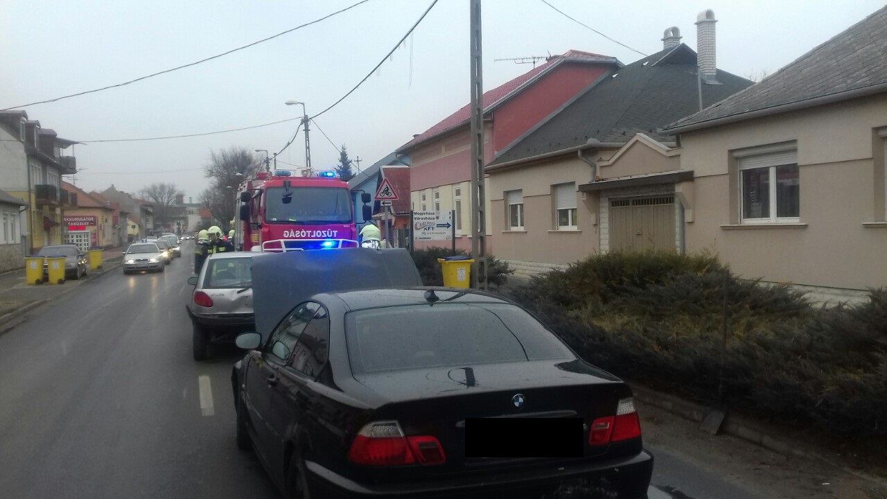 Összeütközött három személyautó Nyíregyházán, a Kállói úton ma 11 óra körül. A város hivatásos tűzoltóit riasztották a balesethez, amelyhez a mentők is kivonultak.