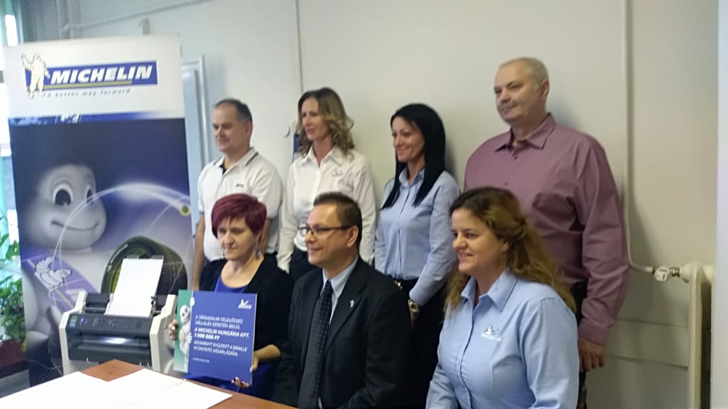 Egy rég várt ajándék érkezett a Vakok és Gyengénlátók Megyei Egyesületéhez, ugyanis a Michelin Hungária Kft támogatásának köszönhetően sikerült egy olyan Braille nyomtatót vásárolni, amely nagy segítséget jelent azoknak a kiadványoknak az előállításában, melyek megkönnyítik a látássérültek mindennapjait.