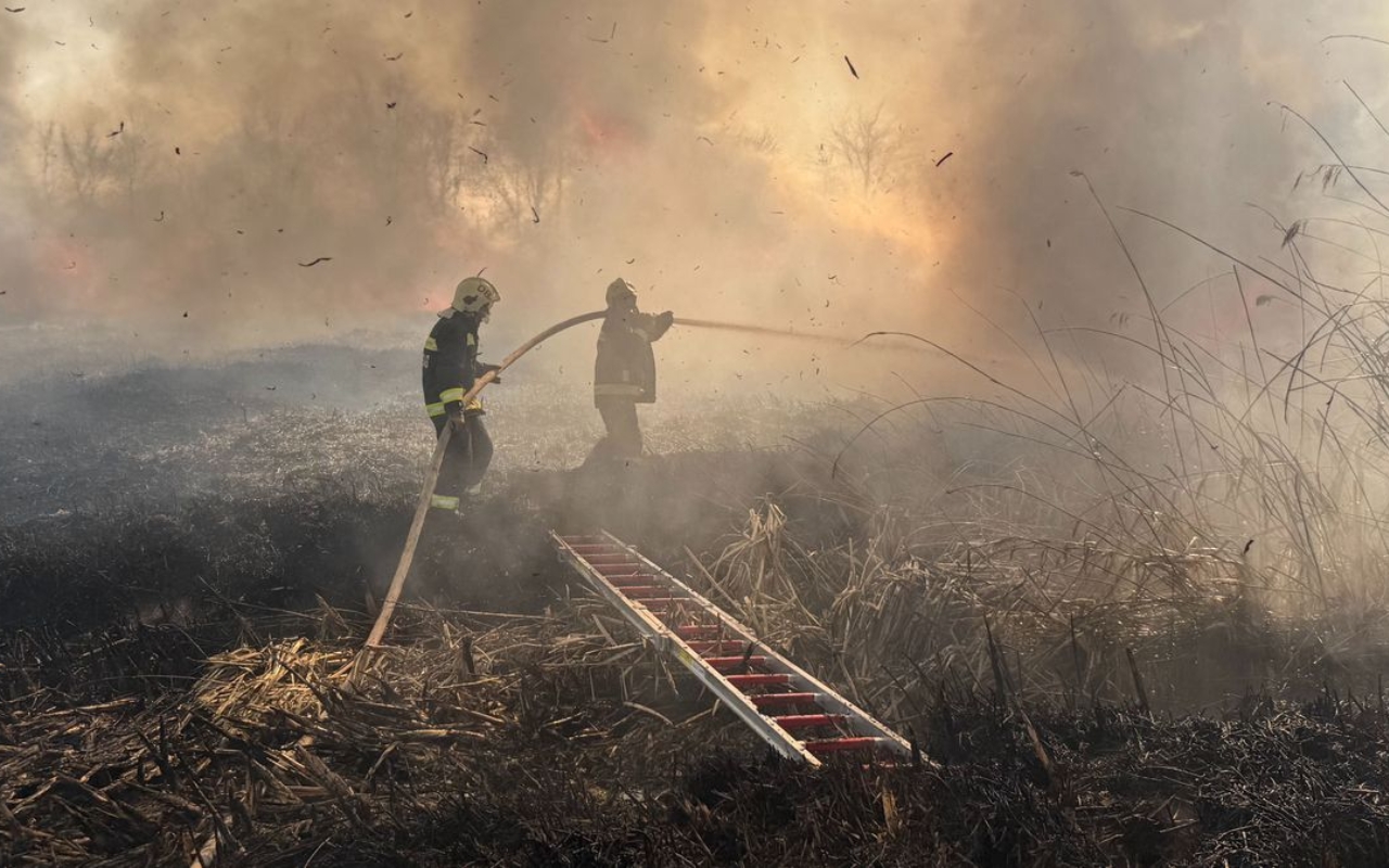 Több hektáron lángol a nádas Hajdúságban, nagy erőkkel vonultak ki a lánglovagok.