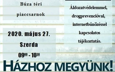 Folytatódik a megyénkben a rendőrség által 2015 őszén útjára indított Házhoz megyünk elnevezésű országos kampánysorozat. A Megyei Rendőr-főkapitányság Bűnmegelőzési Osztályának munkatársaival a közeljövőben több településen is találkozhatnak az érdeklődők. A bűnmegelőzési szakemberek május 27-én 9 órától Nyíregyházán, a Búza téri Piaccsarnokban, június 4-én 10-12 óráig pedig Tiszavasváriban, a Találkozások Házánál várják az érdeklődőket. A részletekről dr. Kovács Attila, a megyei rendőrfőkapitán