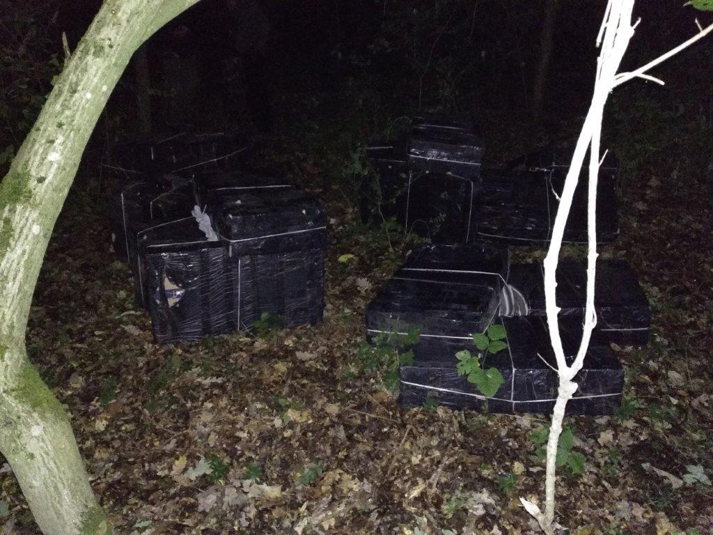 Húszmillió forint értékű cigarettát hagytak hátra a csempészek a zöldhatáron. Szabolcs-Szatmár-Bereg megyében, friss nyomokat követve jutottak el a pénzügyőrök a zöldhatár közelében egy erdészházhoz, ahol két kisebb csoportot fedeztek fel hőkamerával. A NAV munkatársait észlelve, az öt fős társaság az éj leple alatt gyorsan elmenekült. A keresésükre induló pénzügyőrök az erdészház mögötti fenyvesben 15 ezer doboz zárjegy nélküli cigarettát találtak. A NAV munkatársai a több mint 20 millió f