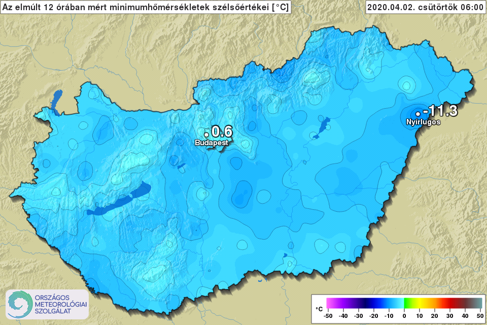 Csütörtökre virradóra megdőlt a hidegrekord - közölte az Országos Meteorológiai Szolgálat a Facebook-oldalán. Azt írták, mostanáig április 2-án -8,6 fok volt a hidegrekord, amelyet 2005-ben a Nógrád megyei Zabarban regisztráltak. Most ennél nyolc állomáson is alacsonyabb értéket mértek. Az új napi rekord végül -11,3 fok lett, amit Nyírlugoson mértek. A pénteki hidegrekord is megdőlhet, ám az éjszakai fagyok jelentősen szelídülnek a hétvégén - tették hozzá.