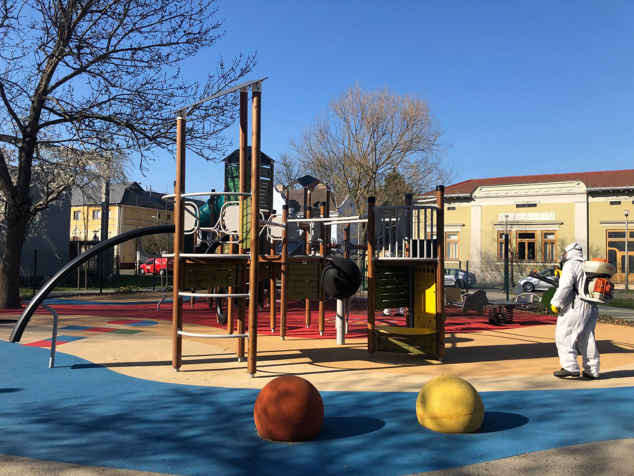 Az új típusú koronavírus további terjedésének megakadályozása érdekében április 01.-től 2 db motoros háti permetezőgéppel megkezdte a közterületeken lévő játszóterek, kondiparkok fertőtlenítését a városüzemeltető gazdasági társág. A továbbiakban a közterületeken lévő pihenő padok fertőtlenítésével folytatja a munkát a társaság. Kérik a városlakókat, hogy az eszközök használata során – figyelemmel a kialakult járványveszélyre - fokozott körültekintéssel járjanak el!