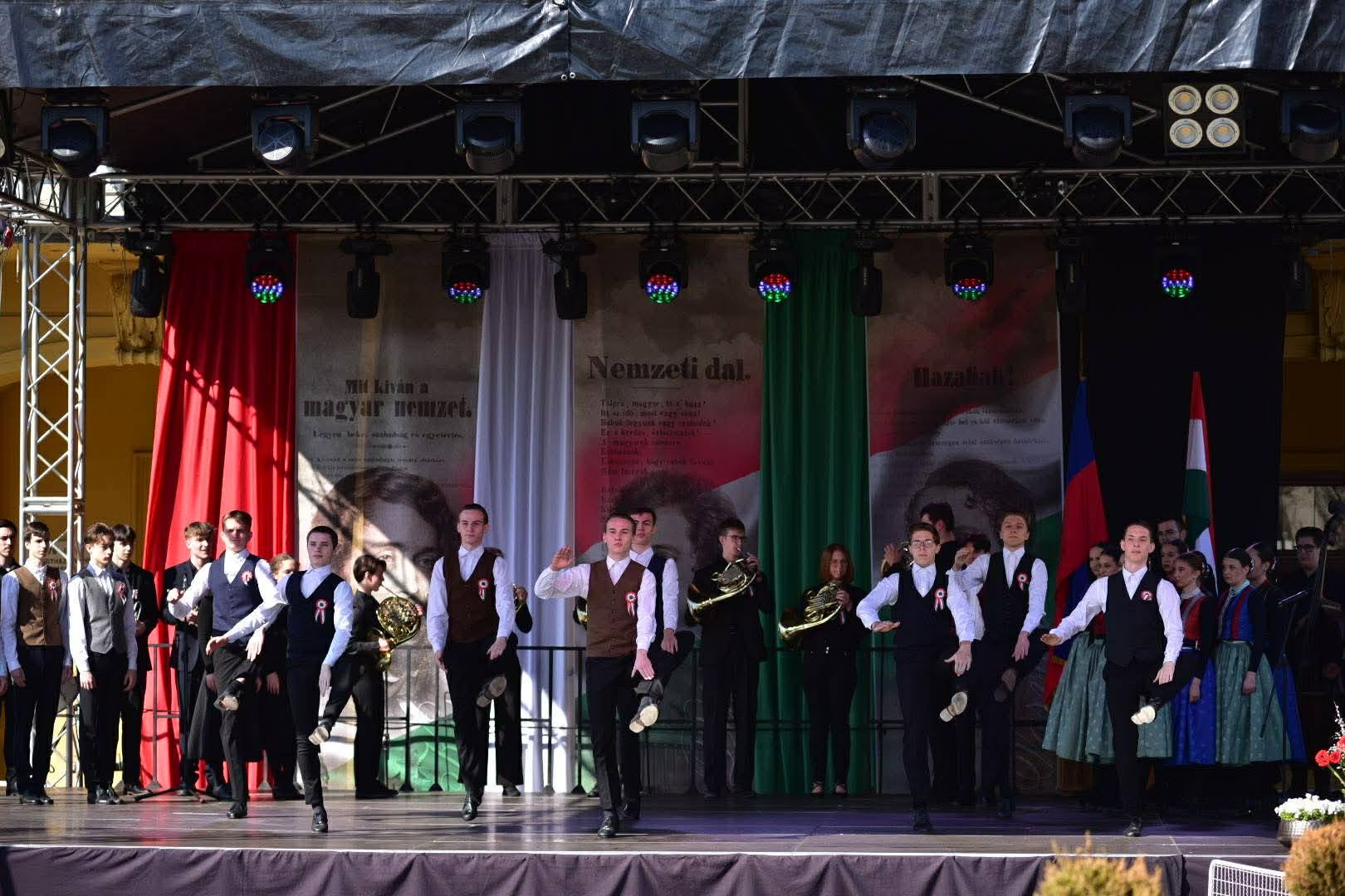 Az ünnepségen történelmi indulók csendültek fel, és a városban mintegy kétezer nemzeti színű zászló emlékeztetett a forradalom örökségére.