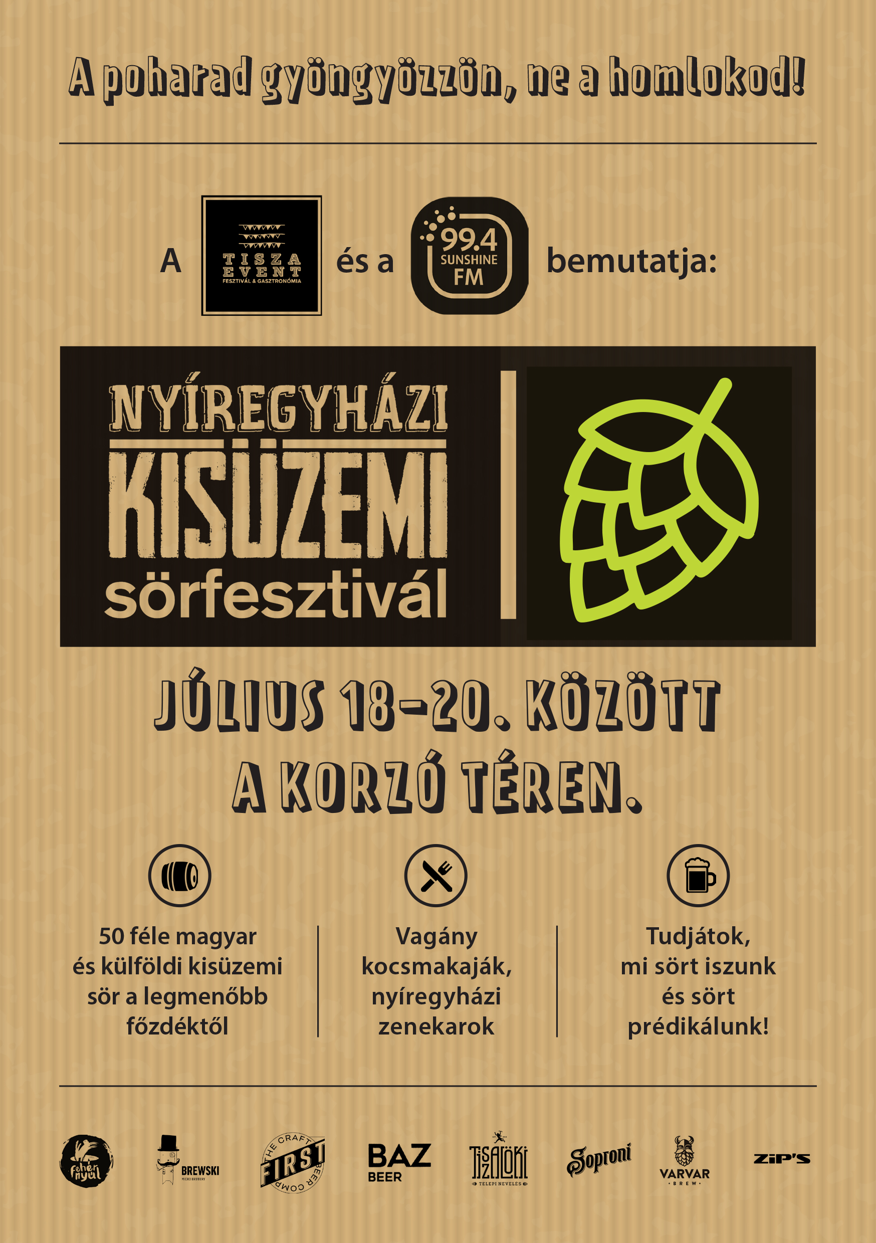 Stílusos Gastro Piknik sorozat Nyíregyházán. A különleges sorozat első eseményét július 18. és 20. között a Korzó melletti Nagy Imre téren rendezik meg, ez az I. Kisüzemi Sörfesztivál. Szombatig tehát bárki megkóstolhatja az 50 féle magyar és külföldi kisüzemi söröket a legjobb sörfőzdékből Nyíregyháza bevárosában. Természetesen a sörökhöz illő ételek és helyi zenekarok koncertjei várják az érdeklődőket mindennap 15.00 és 23.00 óra között.