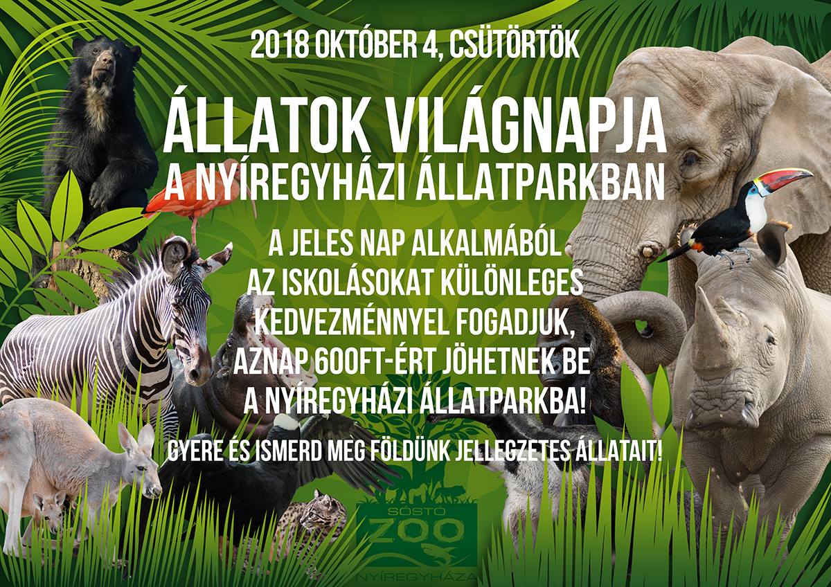 Assisi Szent Ferencnek, az állatok patrónusának emlékére ünneplik világszerte az állatok napját október 4-én, tehát a mai napon. Magyarországon ez alkalomból felvonulásokat rendeznek állattartók és állataik. A Nyíregyházi Állatparkban is készülnek e jeles napra. Az iskolásokat kedvezményes belépők várják a mai napon, valamint (jó idő esetén) lesz papagáj bemutató és különleges fókashow.