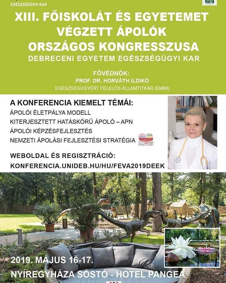 A DE Egészségügyi Kara május 16-17-én rendezi meg a XIII. Főiskolát és Egyetemet Végzett Ápolók Országos Kongresszusát. A kongresszus fővédnöke: prof. Dr. Horváth Ildikó egészségügyért felelős államtitkár. A szervezők bíznak abban, hogy a két nap a résztvevők részére tartalmas programot ígér, és kiváló lehetőséget biztosít az ismerkedésre, a szakmai tanácskozásra, és a kellemes időtöltésre egyaránt. Minden érdeklődőt szeretettel várnak.