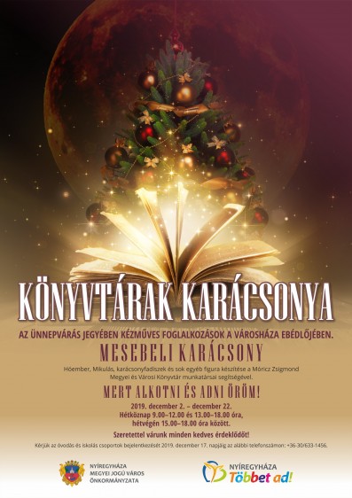 Aki járt már a bécsi karácsonyi vásárban, tudja, hogy a városháza földszintjén foglalkoztatókat rendeznek be advent idejére, ezekben szorgos gyerekkezek készítenek mézes süteményeket, madáretetőt, díszeket, vagy éppenséggel öntenek gyertyát. Míg a szülők vásárolnak, addig a kicsik is hasznosan töltik az időt. A nyíregyházi városházán az ebédlőben találnak majd a bécsihez hasonlót a rövidesen nyíló karácsonyi forgataban szülők és gyerekek. A mesebeli karácsony december 2-22-ig tart, hétköznapokon