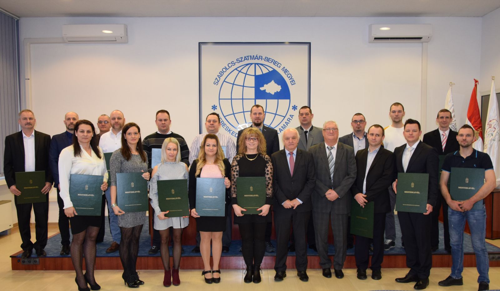 A Szabolcs-Szatmár-Bereg Megyei Kereskedelmi és Iparkamara szervezésében eddig közel 750 mester avatására került sor az elmúlt 5 évben. A február 28-i Mesteravató Ünnepségen autószerelő, bádogos, épületasztalos, kereskedő, fodrász szakmákban 27 mesterlevelet vehettek át a megjelentek - olvasható a szabkam.hu-n. A mesteravató ünnepségen Pekó László, a Szabolcs-Szatmár-Bereg Megyei Kereskedelmi és Iparkamara elnöke köszöntötte a mestereket és megköszönte a mestervizsgáztatásban résztvevő elnökök,