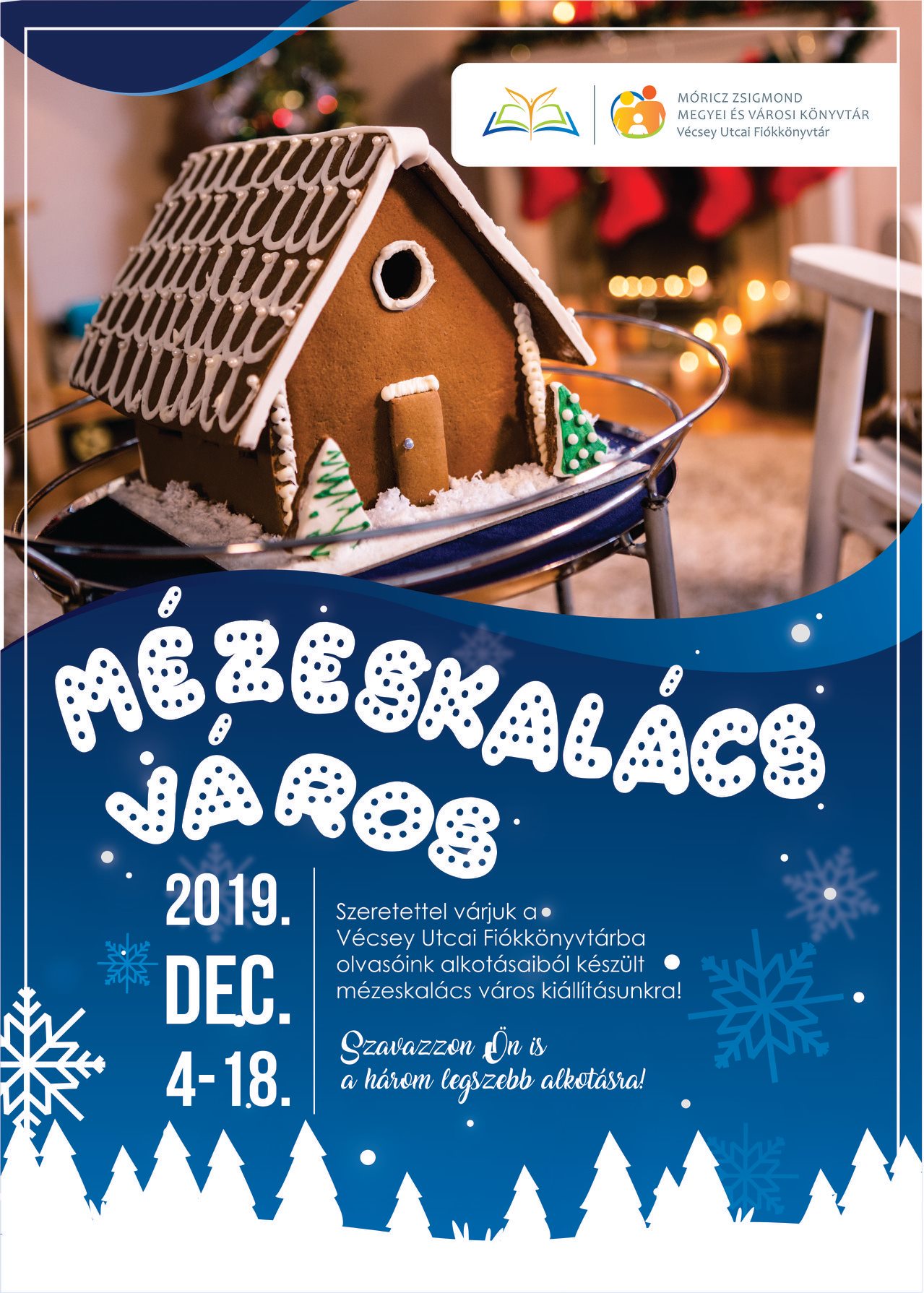 Mézeskalács Város kiállítással szeretnének karácsonyi hangulatot teremteni a nyíregyházi Vécsey Utcai Fiókkönyvtárban idén decemberben, ezért a hónap 4-től csodás mézeskalács illat járja be a könyvtárat. Aznap számos alkotás érkezett a mézeskalács városba. Az édes kiállítás december 18-ig várja a látogatókat, akik szavazhatnak is a legszebb 3 alkotásra. Minden kiállító elismerő oklevelet és ingyenes beiratkozásra jogosító kupont kap, amelyet el is ajándékozhat vagy egy évig bármikor felhasználhat. Ezen kívül vásárlási utalványt is nyerhet az első két legtöbb szavazatot begyűjtő alkotó. Eredményhirdetés december 18-án lesz.