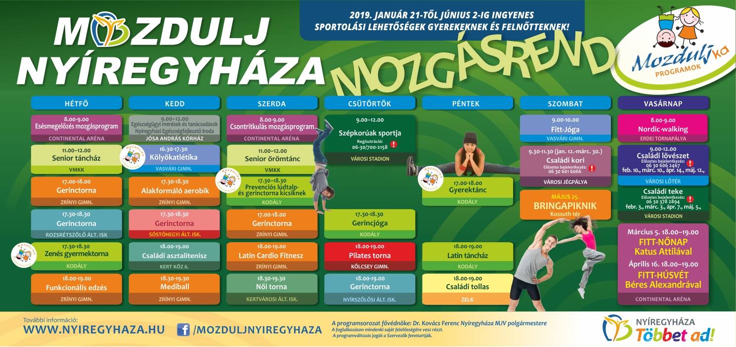Március 15-én és 16-án (péntek-szombat) elmaradnak a „Mozdulj Nyíregyháza!” programsorozat foglalkozásai. Március 17-én (vasárnap) a nordic-walking 8.00 órától várja a mozogni vágyókat az Erdei tornapálya bejáratánál. Március 18-tól (hétfő) a programok ismét a megszokott rend szerint várják a nyíregyháziakat.