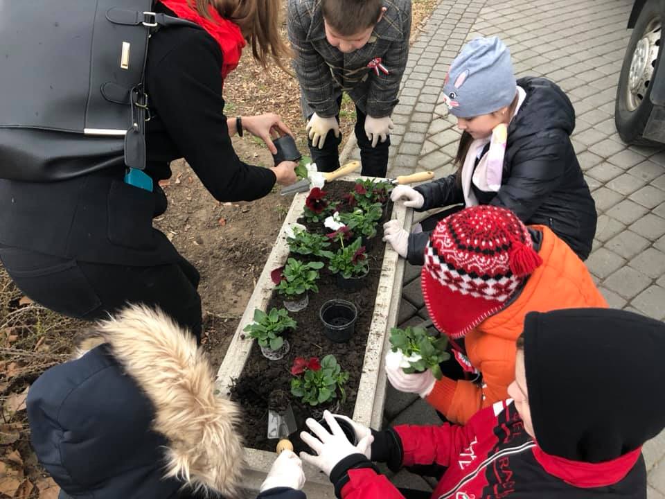 Nemzeti ünnep alkalmából virágot ültettek az általános iskolás gyerekek