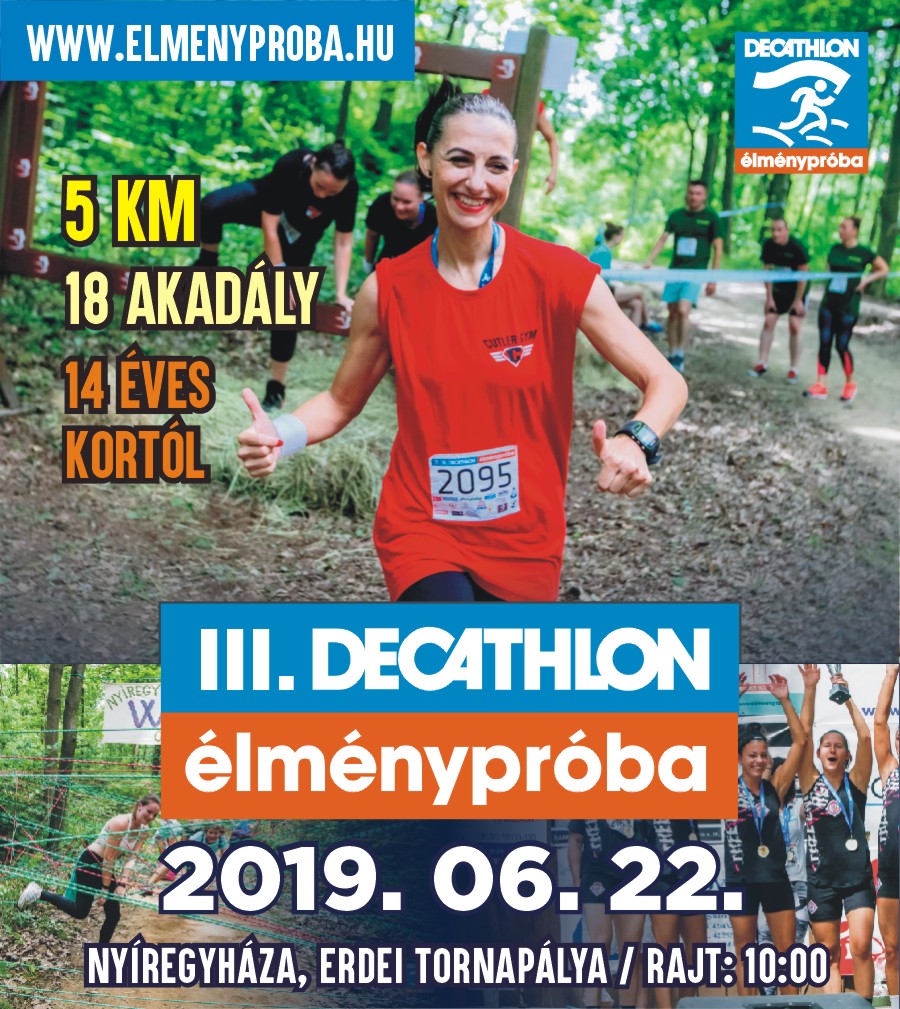Már több mint háromszázan jelentkeztek az idei III.Decathlon élménypróbra, amelynek ezúttal is a nyíregyházi erdei tornapálya ad otthont. Június 22-én az 5 kilométeres élményfutás mellett különleges családi programokkal is készülnek a szervezők. Óriási az érdeklődés a rendezvény iránt. A főváros mellett Szegedről, Szolnokról, Szerencsről, Miskolcról, Mádról, Tokajból, Debrecenből, Hajdúszoboszlóról és természetesen Nyíregyházról is rengetegen neveztek. Az idei élménypróbán 18 plusz egy akadály l