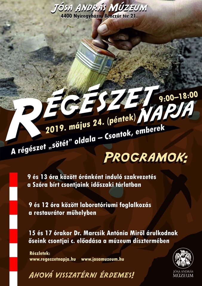 Immáron hatodik alkalommal rendezik meg május 24-én, pénteken a Régészet Napját a Jósa András Múzeumban. A rendezvény célja, hogy a szervezők megmutassák az érdeklődőknek, hogy nem csak a filmekben, de még megyénkeben is dolgoznak régészek szép számmal. A látogatók laboratóriumi foglalkozáson is részt vehetnek, ahol betekintést nyerhetnek a régészek munkájába, mindennapi életébe - mondta el Dr. Körösfői Zsolt régész, a régészeti osztály vezetője, az esemény sajtótájékoztatóján. Vécseiné Lakatos Bernadett az intézmény múzeumpedagógusa pedig említést tett arról is, hogy június 22-én ismét megnyitja kapuit éjszaka a Jósa András Múzeum, ugyanis ebben az évben is csatlakoztak Múzeumok éjszakája programsorozathoz, melynek ezúttal a '80-as évek lesz a témája. Az intézmény igazgatója Dr. Rémiás Tibor arról is beszámolt, hogy két díjat is bezsebelhetett a múzeum a közelmúltban.