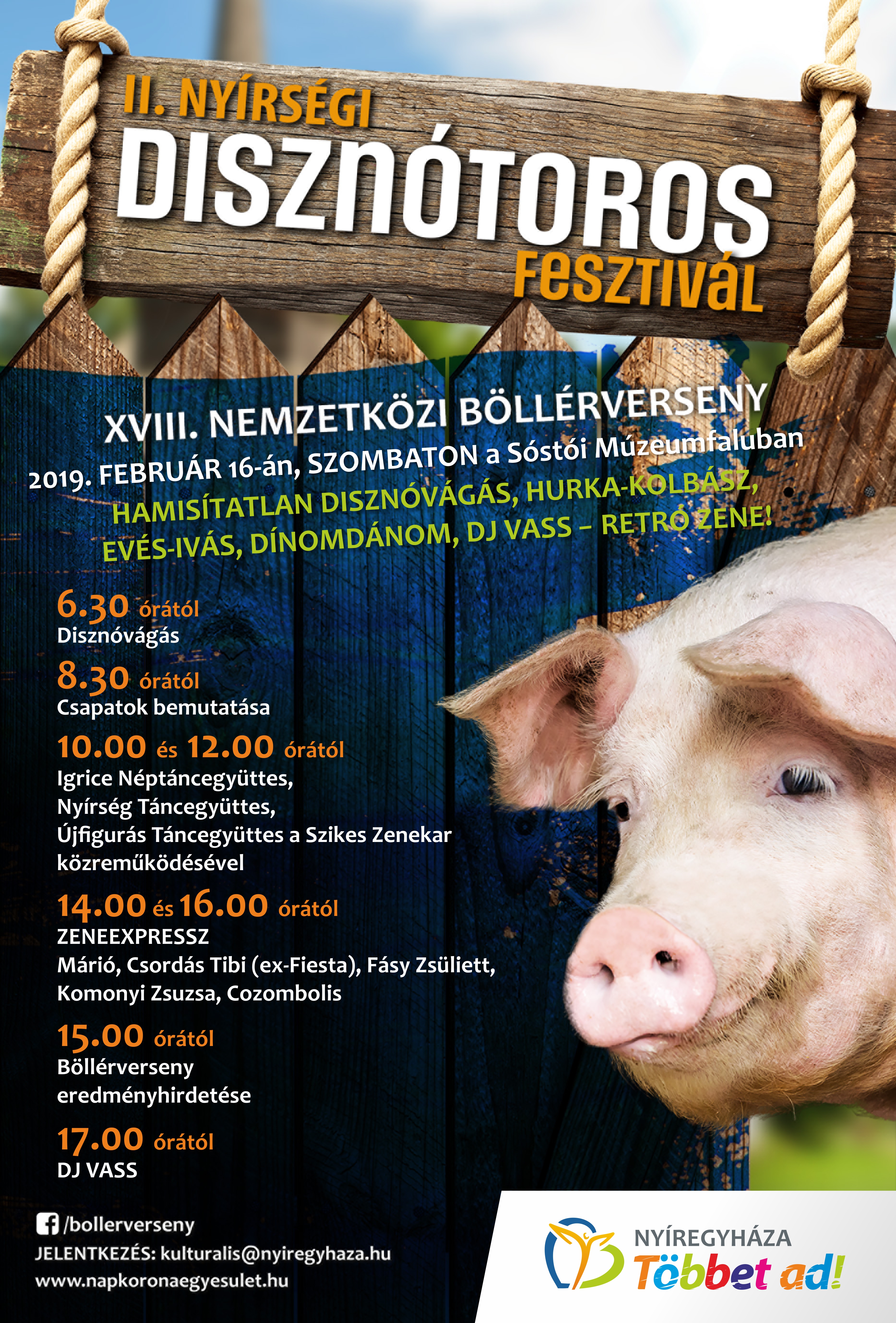 Már nem titok, hogy kik szórakoztatják majd a nagyérdemű közönséget a II. Nyírségi Disznótoros fesztiválon február 16-án a Sóstói Múzeumfaluban. Érkezik a ZeneExpress, melynek előadói lesznek többek között Csordás Tibi, Komonyi Zsuzsi, Cozombolis, Márió a harmonikás, Fásy Zsüliett, valamint DJ VASS is fellép. A délelőtti hangulatról pedig a helyi kulturális csoportok és táncegyüttesek gondoskodnak. Színpadra lép az Igrice, a Nyírség és az Újfigurás Néptáncegyüttes is a Szikes Zenekar közreműködé