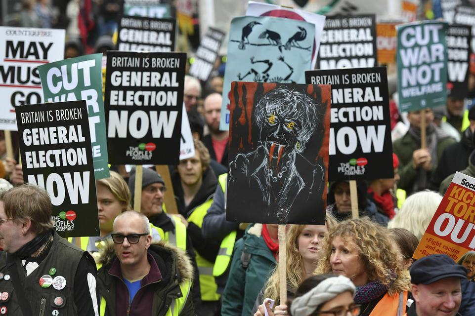 Több ezren tüntettek a brit kormány ellen szombaton Londonban, a megszorító intézkedések végét és új általános választások kiírását követelve. Az Emberek Gyűlése a Megszorítások Ellen nevet viselő megmozduláson a szervezők becslései szerint 5-10 ezer ember vett részt, köztük politikusok és szakszervezeti vezetők. A londoni megmozdulást inspiráló franciaországi sárgamellényes tüntetők képviselői is részt vettek a tiltakozáson. Nagy-Britannia a tervek szerint idén márciusban kilép az Európai Uniób