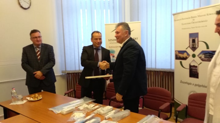 A Hübner-H Kft. minden évben támogatja a megyei kórházakat, idén az artroszkópos műtétek elvégzésében segítő eszközt adományoztak a Jósa András Oktatókórház Traumatológiai Osztályának, 2 millió Ft értékben. Dr. Adorján Gusztáv a kórházak főigazgatója örömmel vette a nagylelkű felajánlást, és elmondta: az egészségügyi intézménynek nagy segítséget jelentenek a helyi vállalkozások felajánlásai, hiszen ebben az évben is több olyan műszer vásárlásra nyílt így lehetőség, melyek nagymértékben megkönnyítik a gyógyító munkát. Dr. Francz Mónika, a Szabolcs-Szatmár-Bereg Megyei Kórházakért Közhasznú Alapítvány kuratóriumi elnöke arról számolt be, hogy tavaly 22 millió forint támogatást kapott a civil szervezet, melynek fele célzott támogatás volt, a másik felét általános célokra használták fel az intézményeknél. Ingo Heerdt, a HÜBNER KFT. ügyvezetője azt emelte ki, hogy a családi vállalkozásban lévő cégcsoport, minden telephelyén kiveszi a részét a térség támogatásából. Dr. Sztányi István, a Jósa András Oktatókórház osztályvezető főorvosa pedig azt is elárulta, milyen eszközök beszerzésére jutott a 2,5 millió forintból.