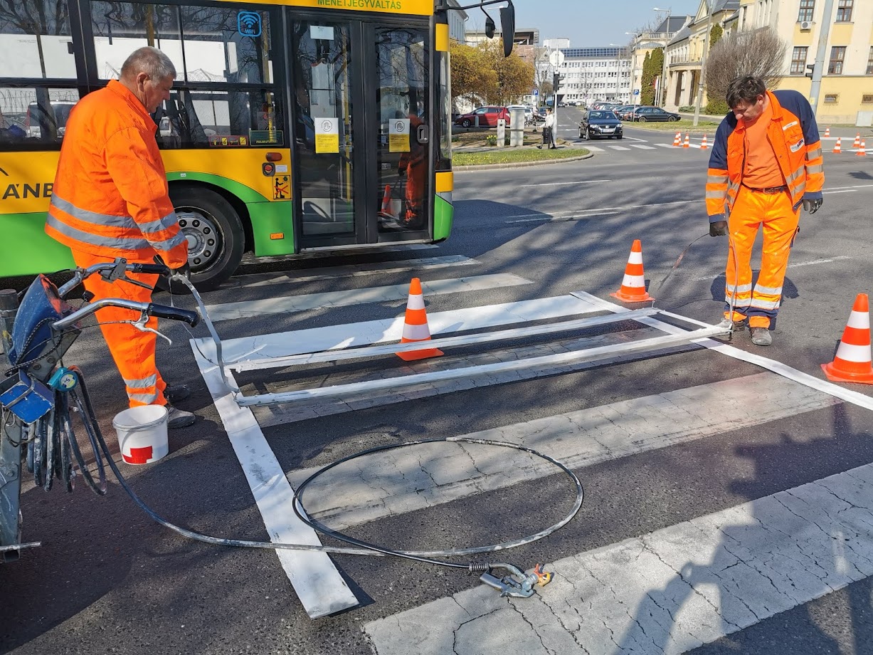 Útburkolati jeleket festenek Nyíregyházán, a Hunyadi utca-László utcai csomópontban, a jelzőlámpánál. A balra kanyarodók és az egyenesen haladók is fokozott figyelmmel, óvatosan közelítsék meg a munkaterületet. A város területén ezen kívül több helyen zajlik még a munka, a város több pontján festik a szakemberek az útburkolati jeleket. Péntek este pedig lezárják a Hősök terét, szintén útburkolati jelek festése miatt. Arra kérik az autóvezetőket, hogy ne hagyjanak parkoló autókat a munkaterületen, így elősegítve a zavartalan munkavégzést.