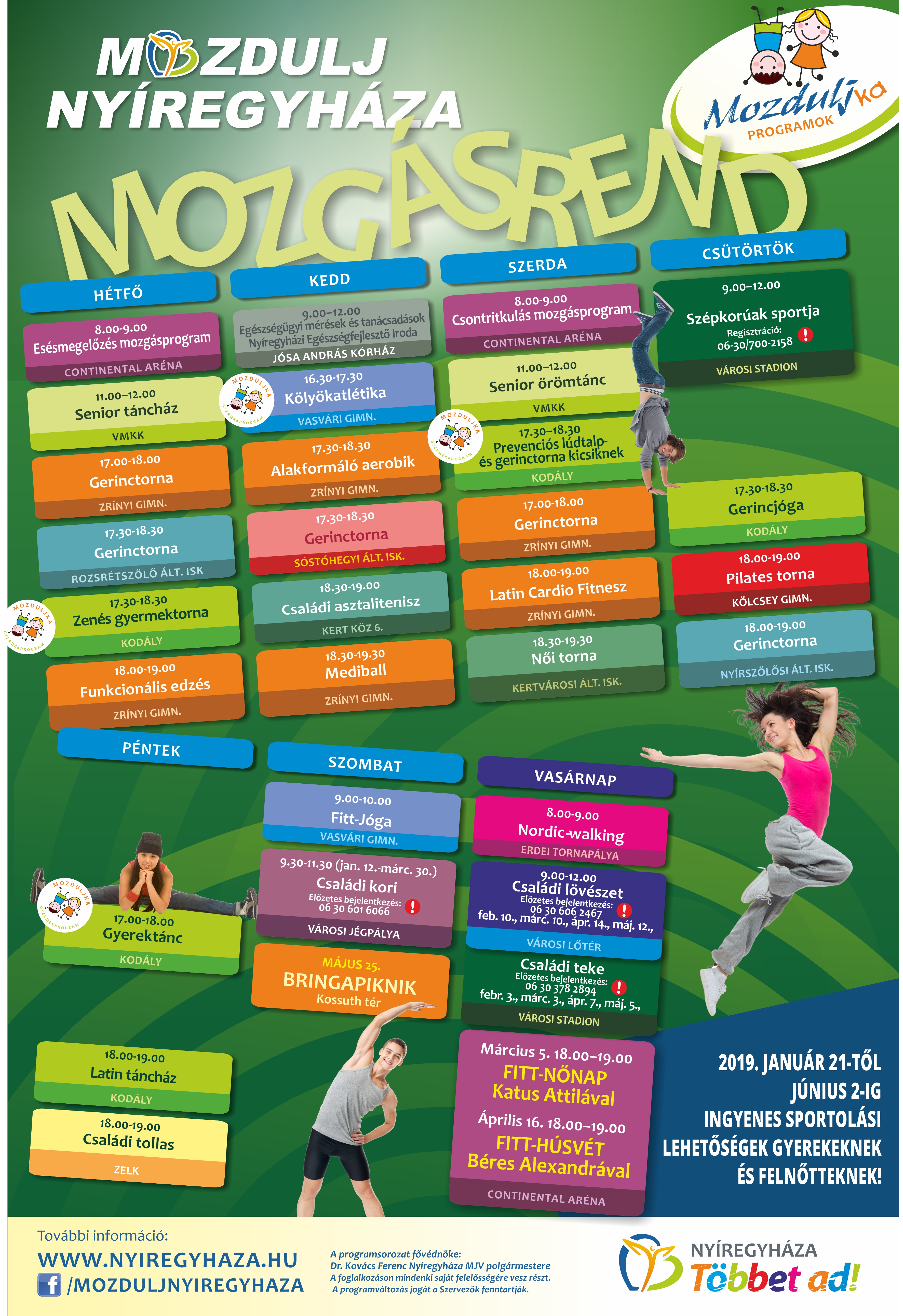 A Mozdulj Nyíregyháza programsorozat részeként rendszeresen megtartott pilates óra április 18-án (csütörtökön) az oktató egyéb elfoglaltsága miatt elmarad. A húsvét és a tavaszi szünet kapcsán pedig további módosítások lesznek a már megszokott órarendben. Április 19-én (pénteken), 21-én (vasárnap) és 22-én (hétfőn) a foglalkozások elmaradnak, április 20-án (szombaton) azonban a Vasvári Gimnáziumban a jógára 9.00 órától várnak mindenkit szeretetettel. Április 23-tól (kedd) a foglalkozások újra a