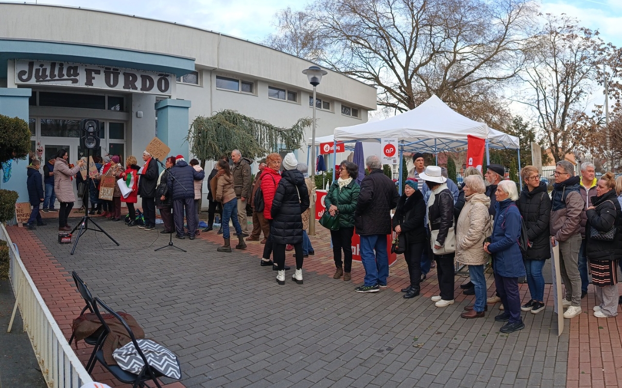 Több mint százötven nyíregyházi lakos gyűlt össze szombaton a zárva tartó Júlia fürdő előtt, hogy a létesítmény újranyitását követelje. A demonstráció után a civilek nyílt levelet küldtek a város polgármesterének és a képviselőknek. Azt írják, már közel háromezer aláírás gyűlt össze a fürdő megmentéséért, és szerintük a működtetés, illetve a felújítás költsége a város költségvetéséhez képest csekély. A Sóstó-Gyógyfürdők Zrt. vezérigazgatója korábban arról beszélt: a fürdő újranyitását több, a 2007-es felújításból eredő műszaki probléma is nehezíti, például a hibás vízszigetelés és csaptelepek miatti beázások. Hozzátette: a város és a társaság pályázati forrásokat keres a felújításhoz, de jelenleg nincs ismert támogatási lehetőség. A civilek ütemtervet, forrásbiztosítást és nyílt kommunikációt kérnek a városvezetéstől.